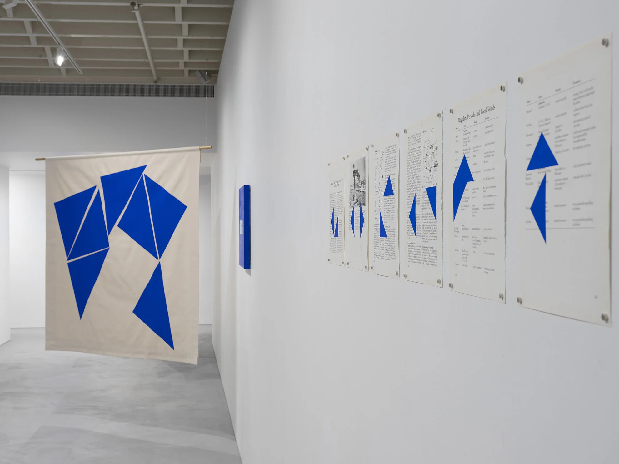 Despite this inexperience, in Pronounced á-nem-oy Perkins nevertheless attempts to harness the wind to continue his exploration of language through abstraction. In a suite of paintings, works on paper, and video that hitch the literature of Ancient Greece to the telegraphic system of flag semaphore, Perkins orients himself within space and language, likening seeds blown by the wind to units of speech, and playfully exploring the evolution of language — albeit sometimes along failed routes...